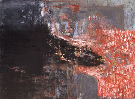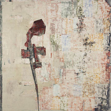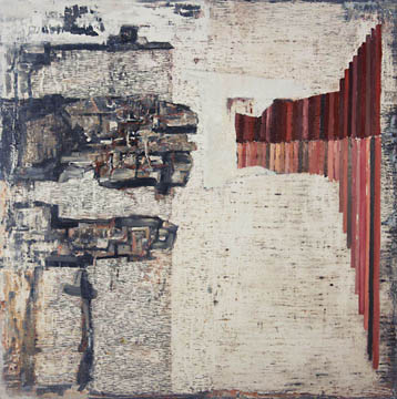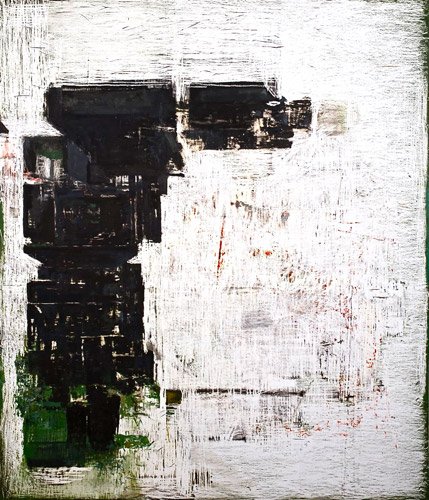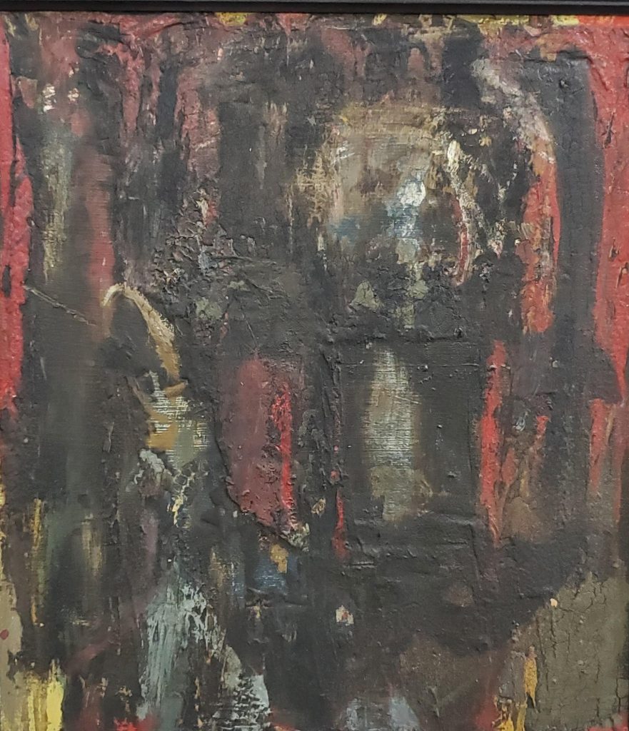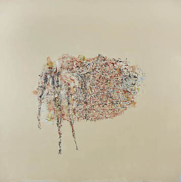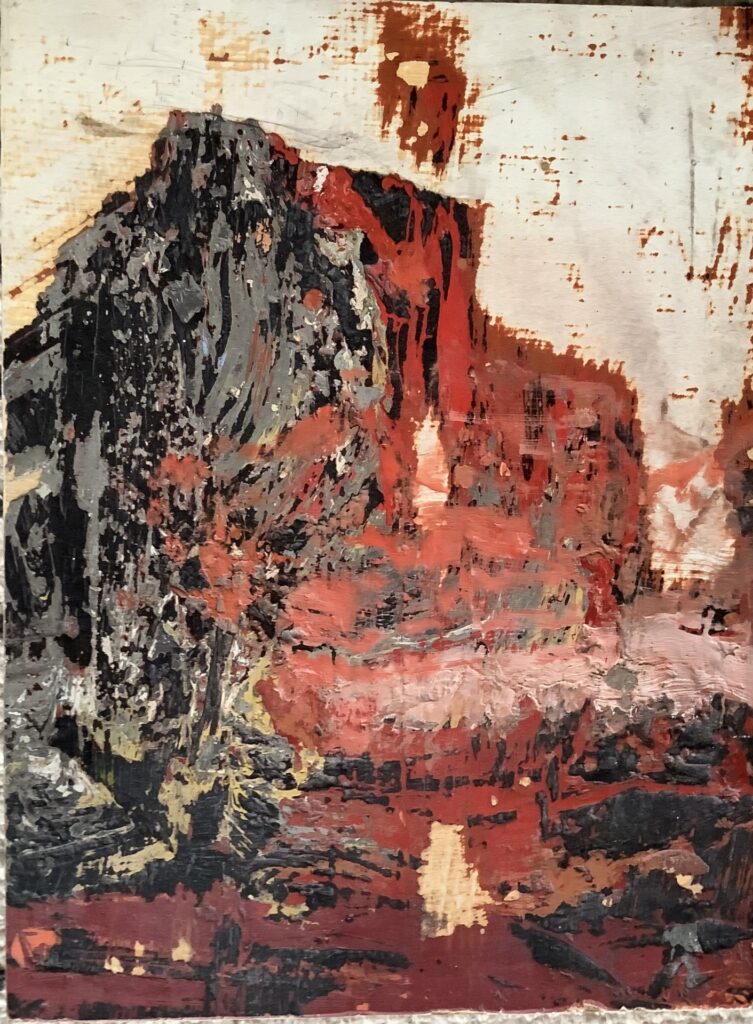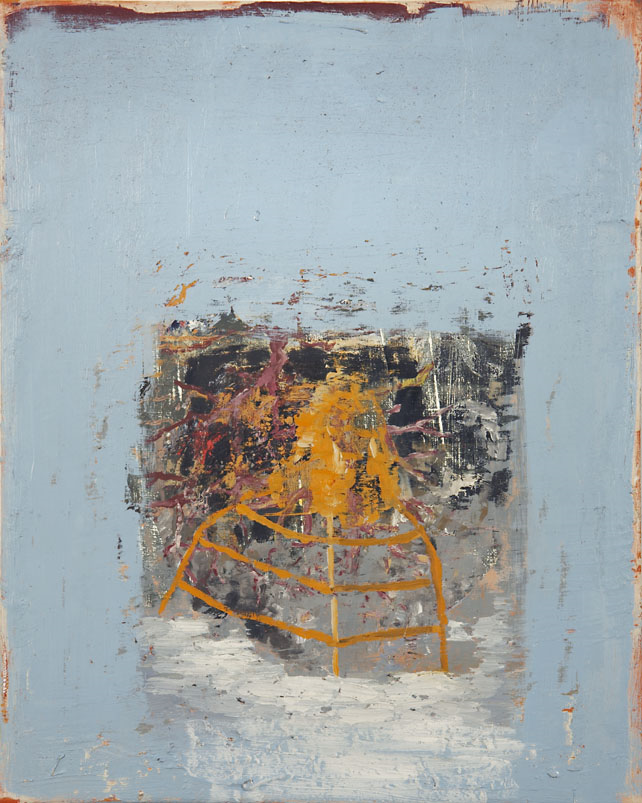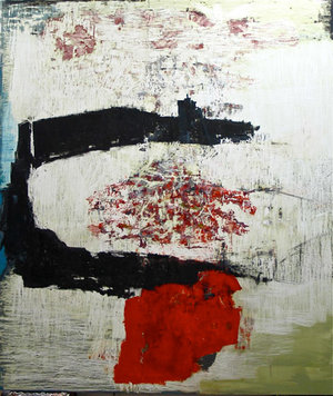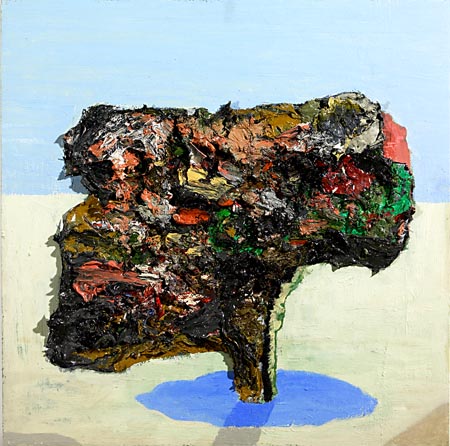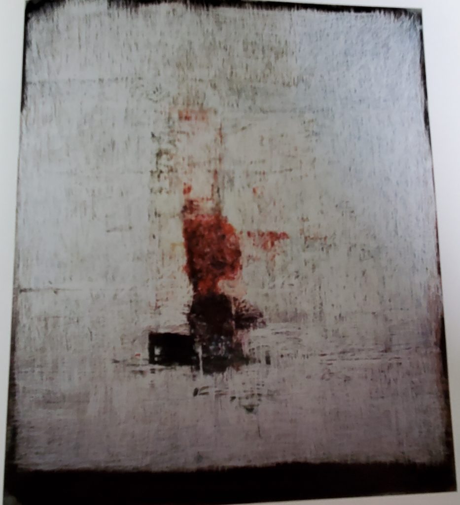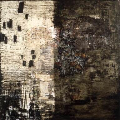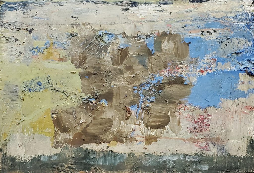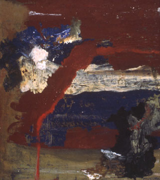 I did not think that this painting was by Brown until his former assistant, Matt Janisse, confirmed that it was by him. I subsequently discovered a photograph of it on a CD of 2005 paintings, allowing for a definitive dating. The painting was composed the same was as the Yard series: by gluing dried paint chips on the surface. According to Janisse, Brown was never happy with the result. The painting was framed but never exhibited.