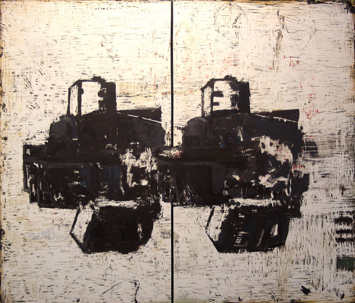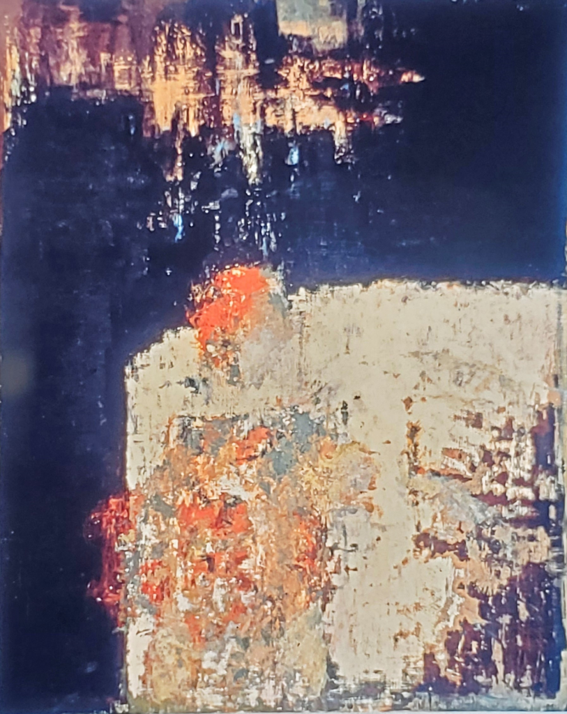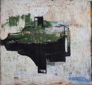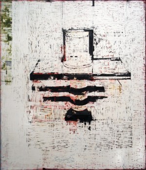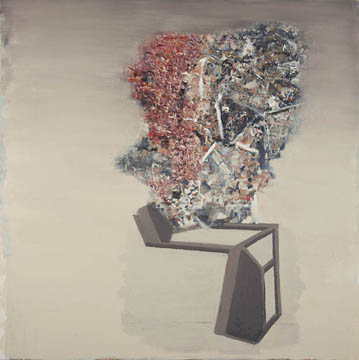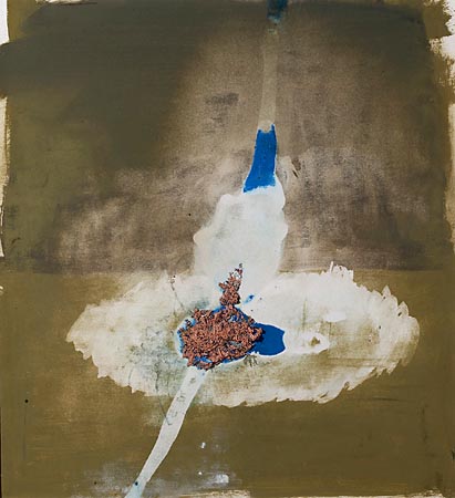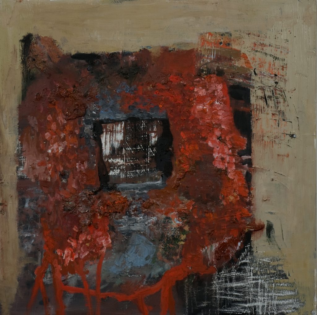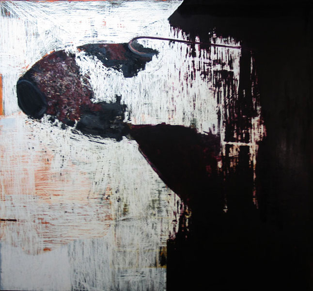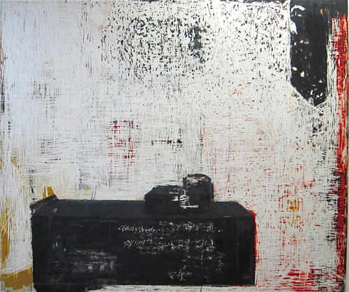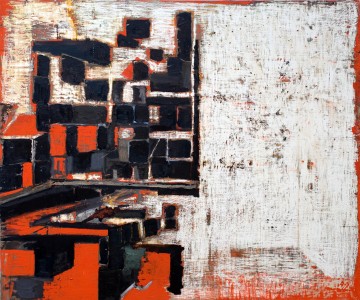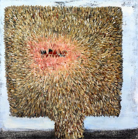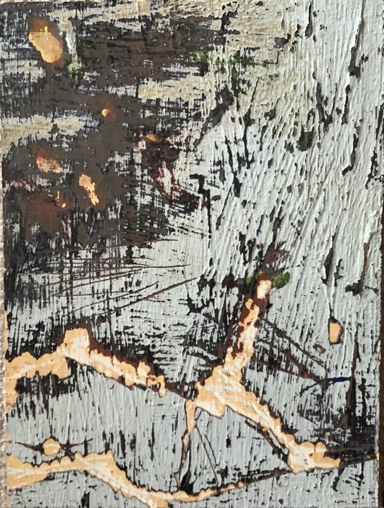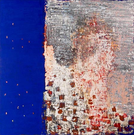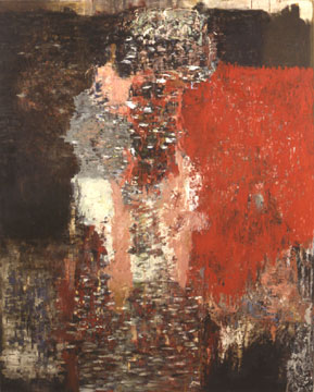 I did not think that this painting was by Brown until his former assistant, Matt Janisse, confirmed that it was by him. I subsequently discovered a photograph of it on a CD of 2005 paintings, allowing for a definitive dating. The painting was composed the same was as the Yard series: by gluing dried paint chips on the surface. According to Janisse, Brown was never happy with the result. The painting was framed but never exhibited.