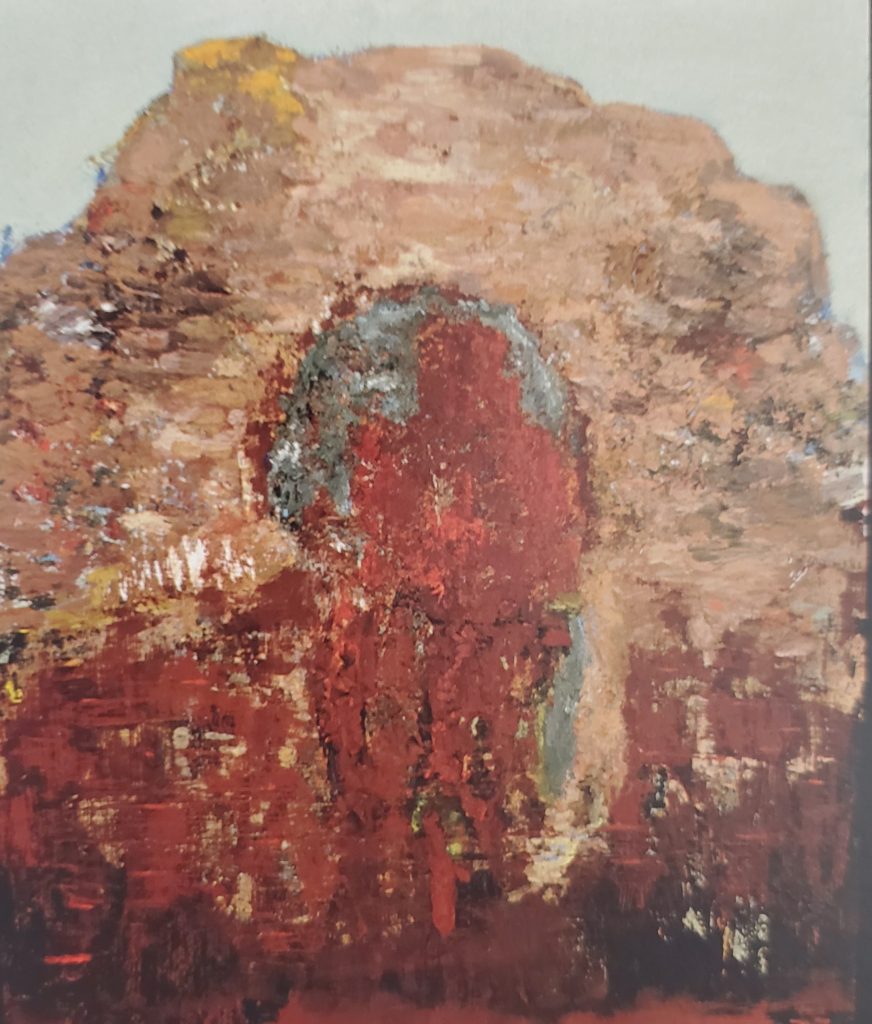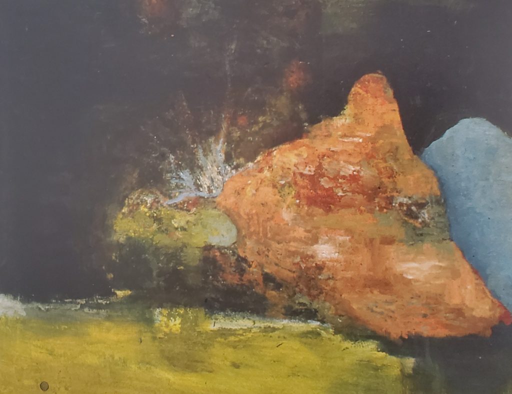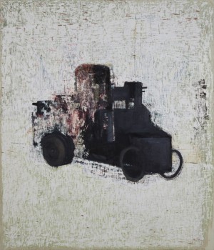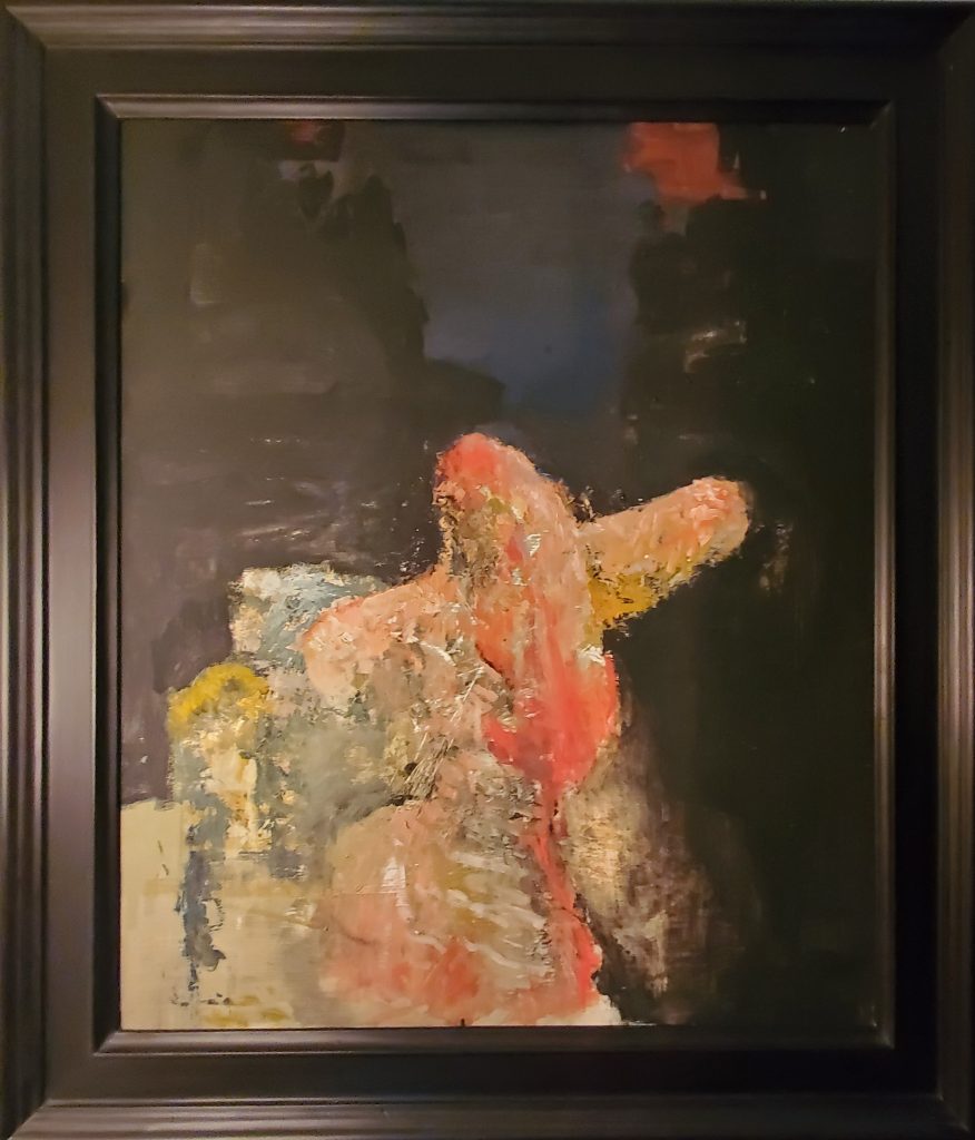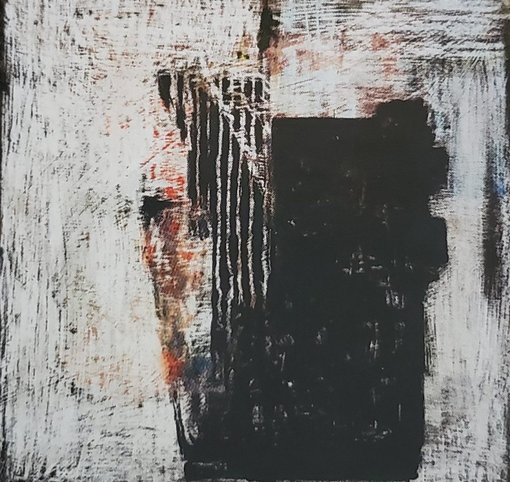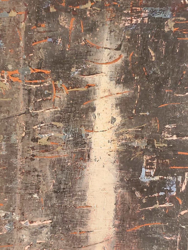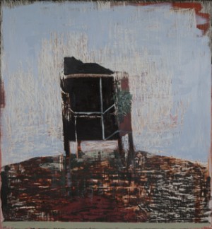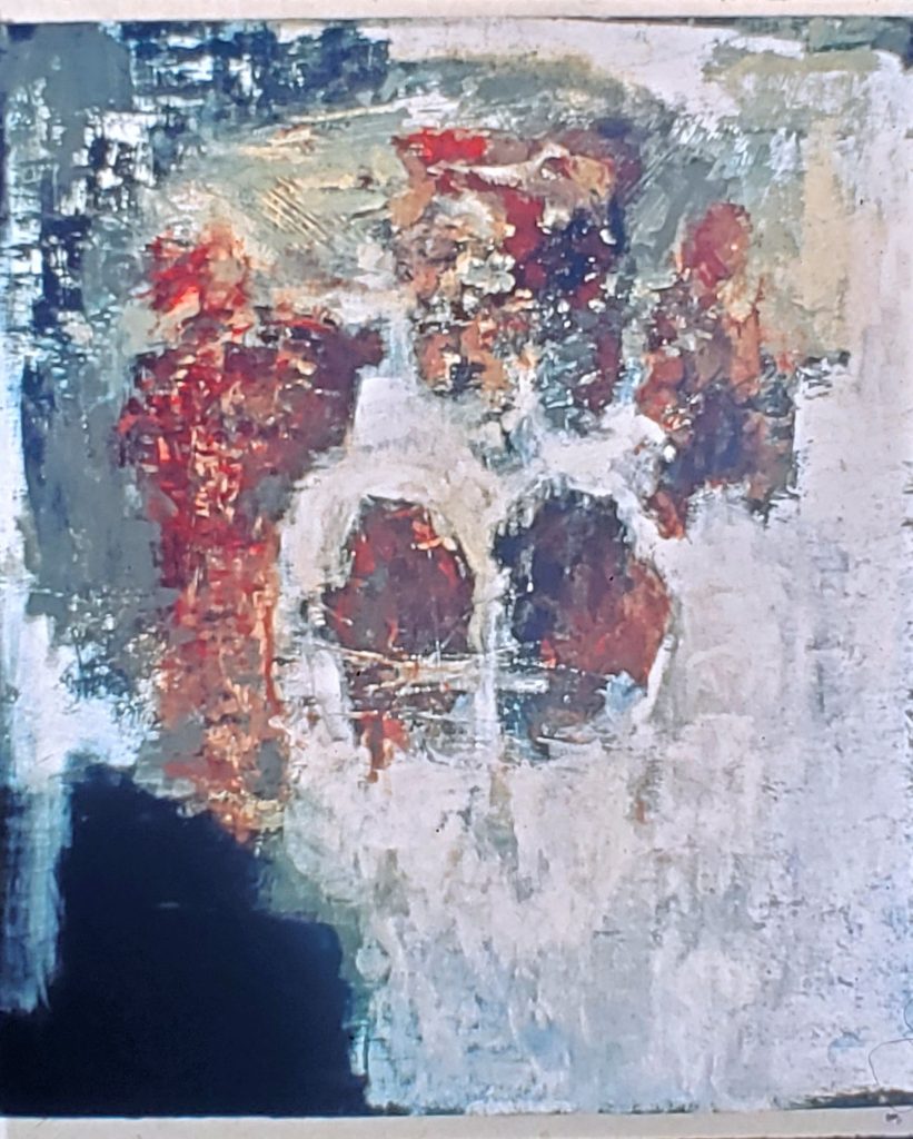 I did not think that this painting was by Brown until his former assistant, Matt Janisse, confirmed that it was by him. I subsequently discovered a photograph of it on a CD of 2005 paintings, allowing for a definitive dating. The painting was composed the same was as the Yard series: by gluing dried paint chips on the surface. According to Janisse, Brown was never happy with the result. The painting was framed but never exhibited.
