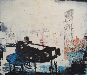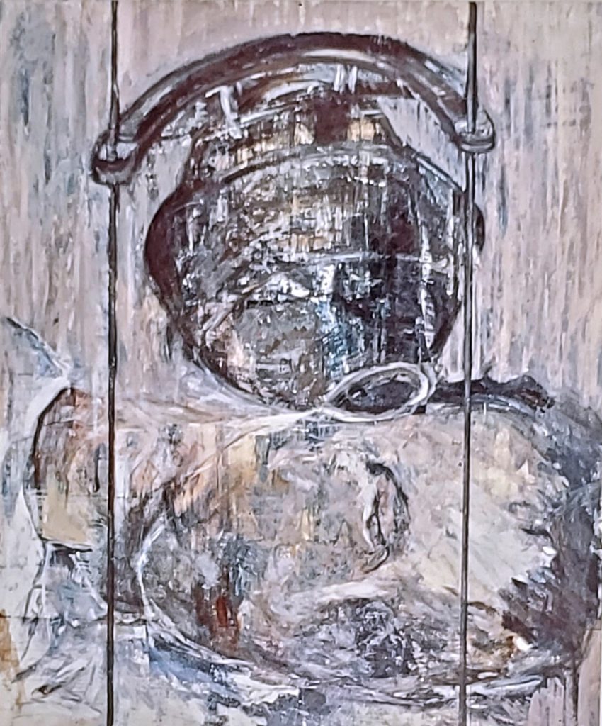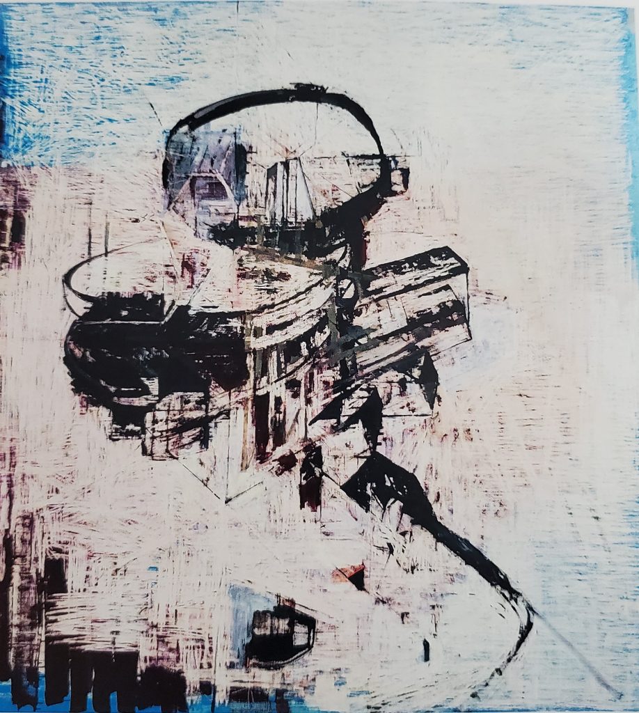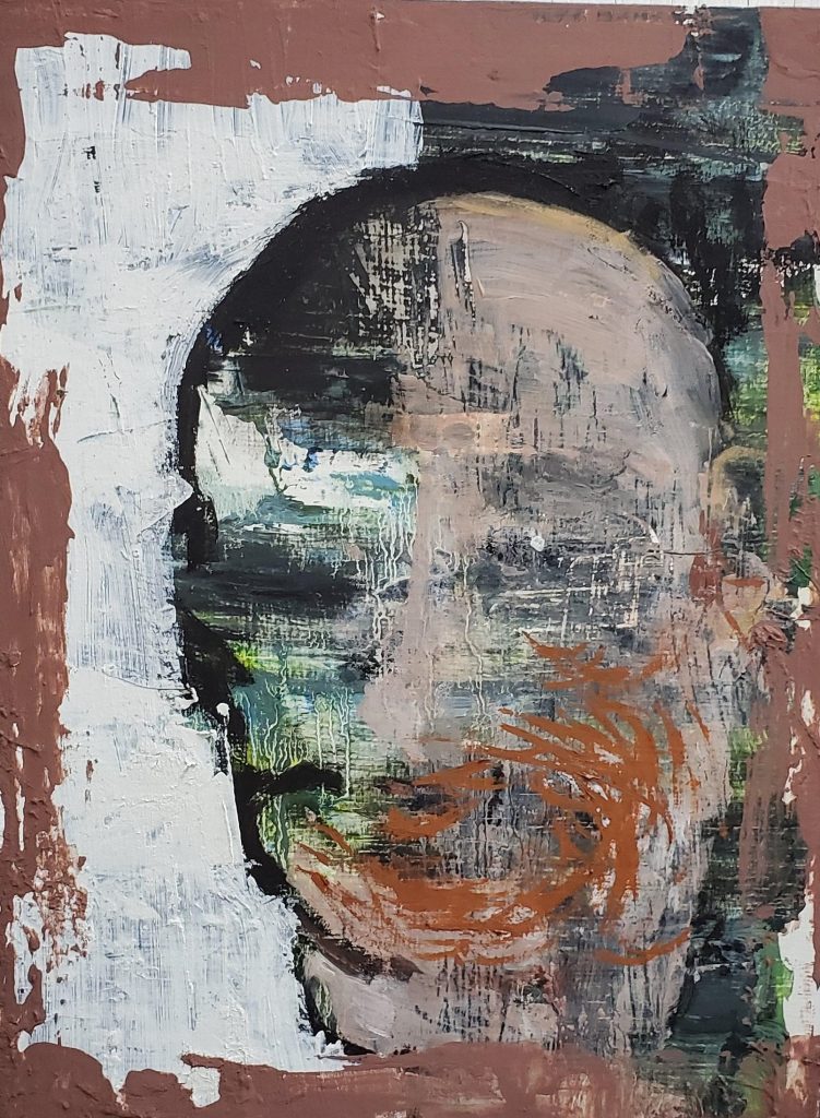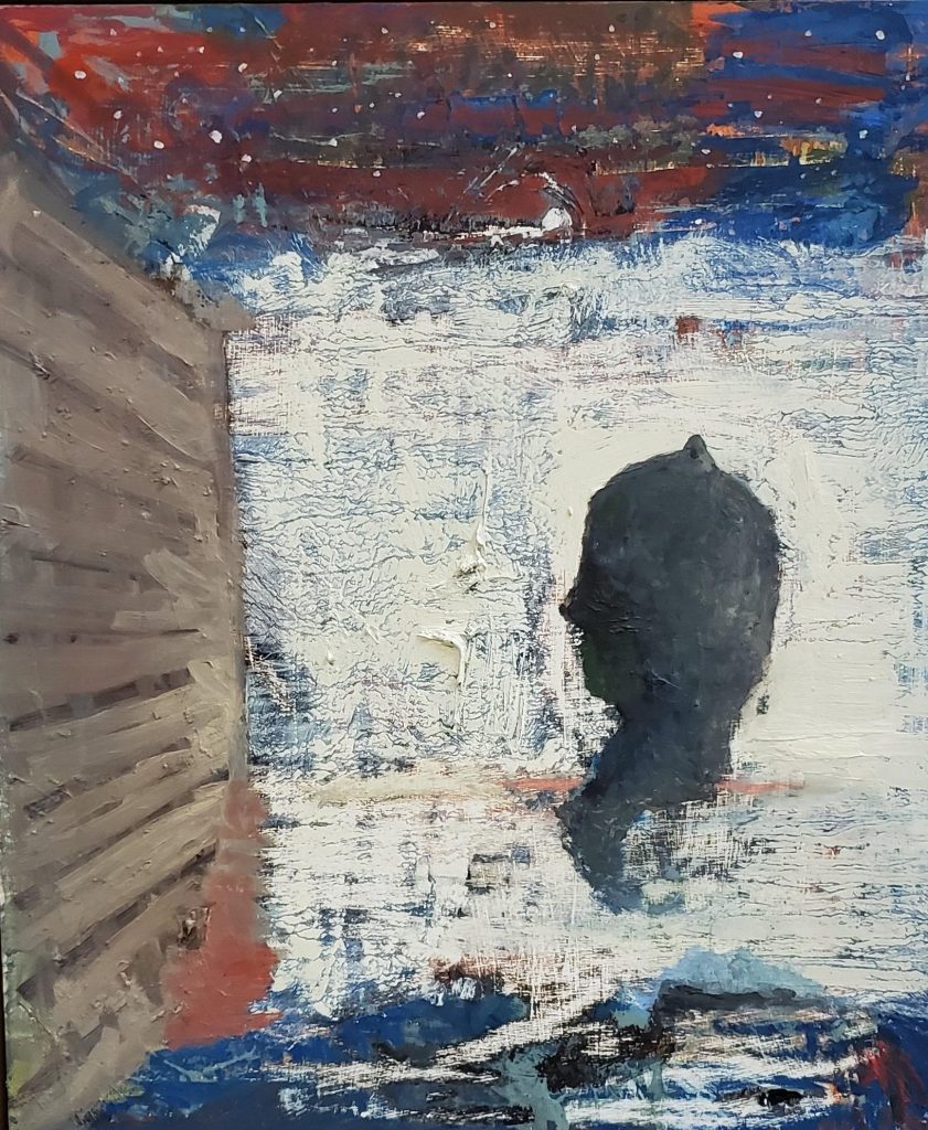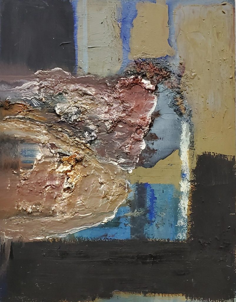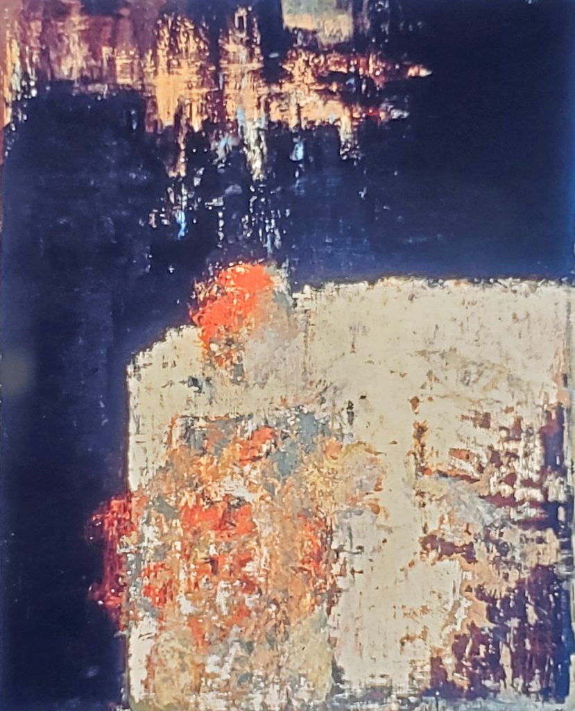 I did not think that this painting was by Brown until his former assistant, Matt Janisse, confirmed that it was by him. I subsequently discovered a photograph of it on a CD of 2005 paintings, allowing for a definitive dating. The painting was composed the same was as the Yard series: by gluing dried paint chips on the surface. According to Janisse, Brown was never happy with the result. The painting was framed but never exhibited.