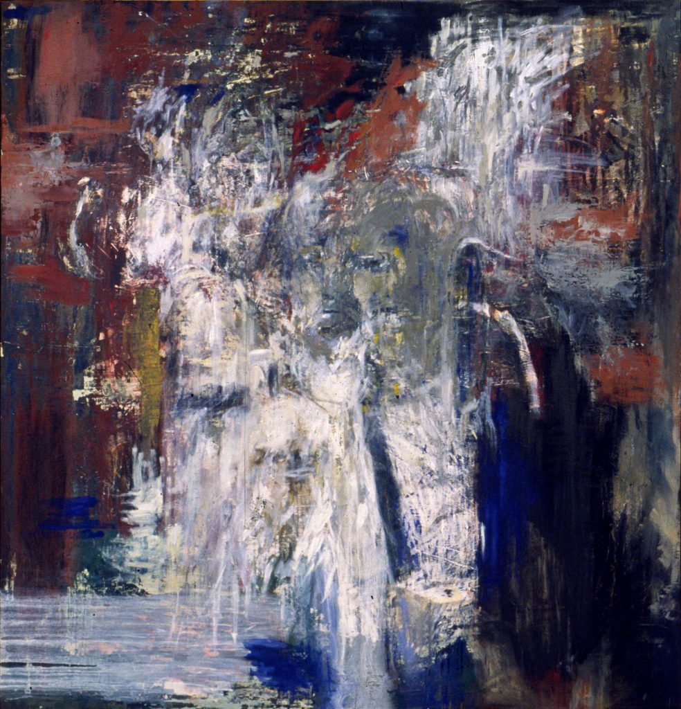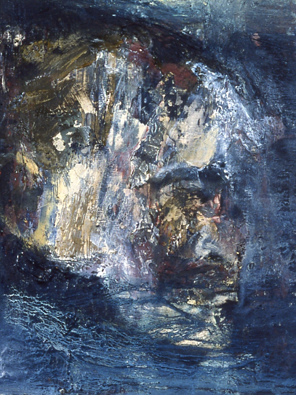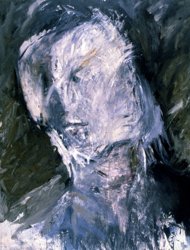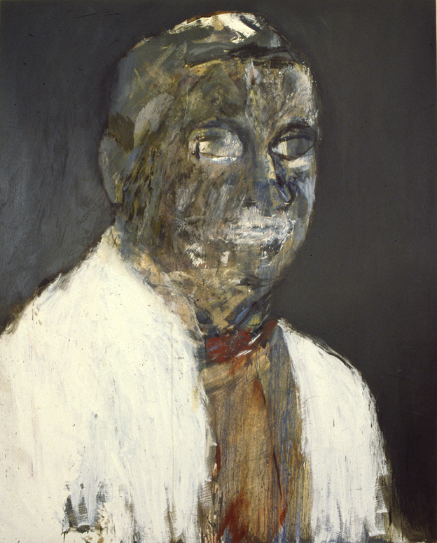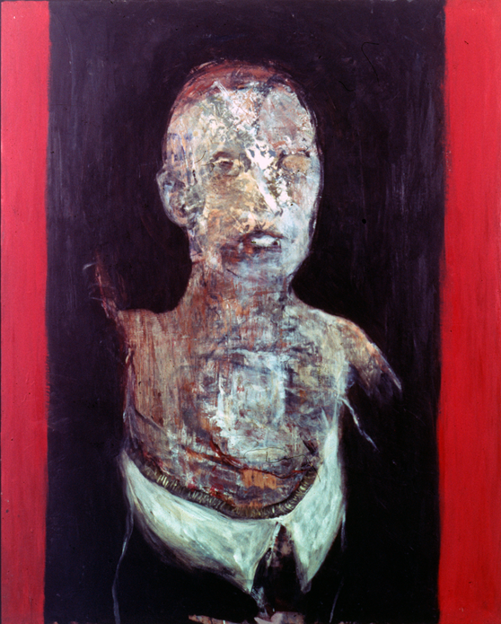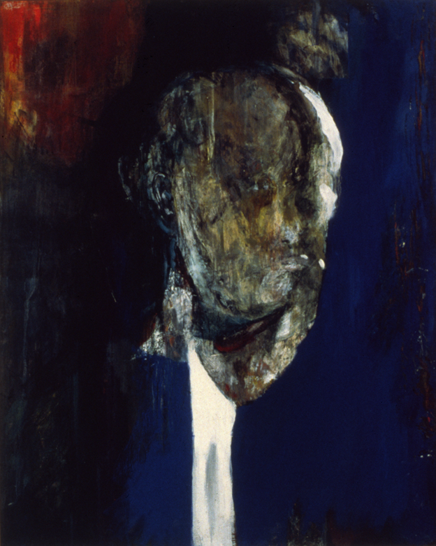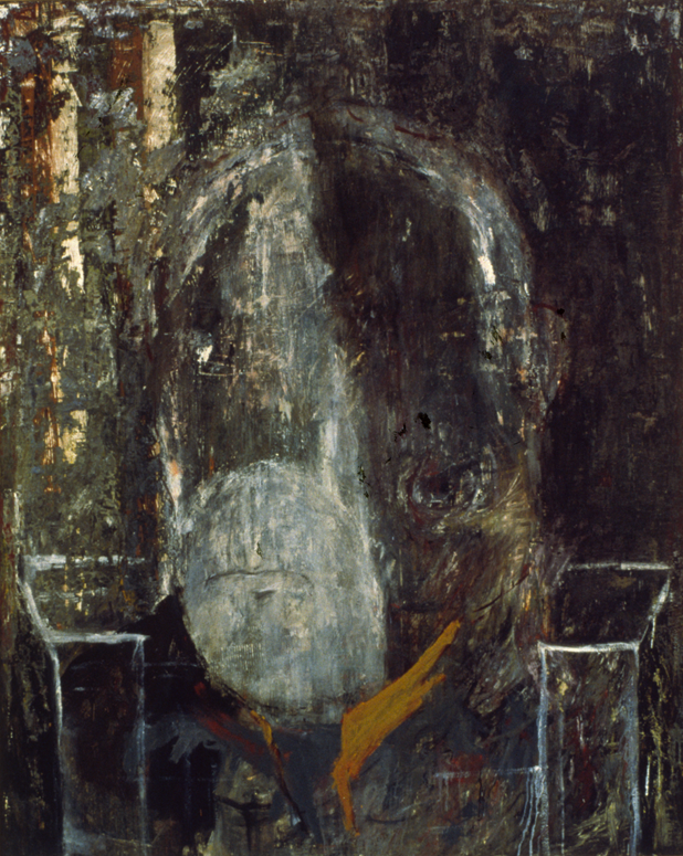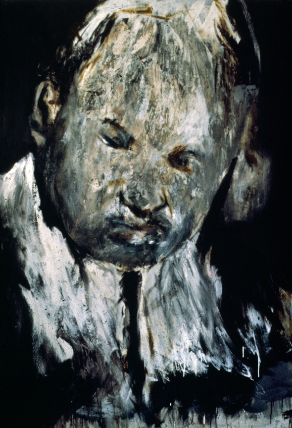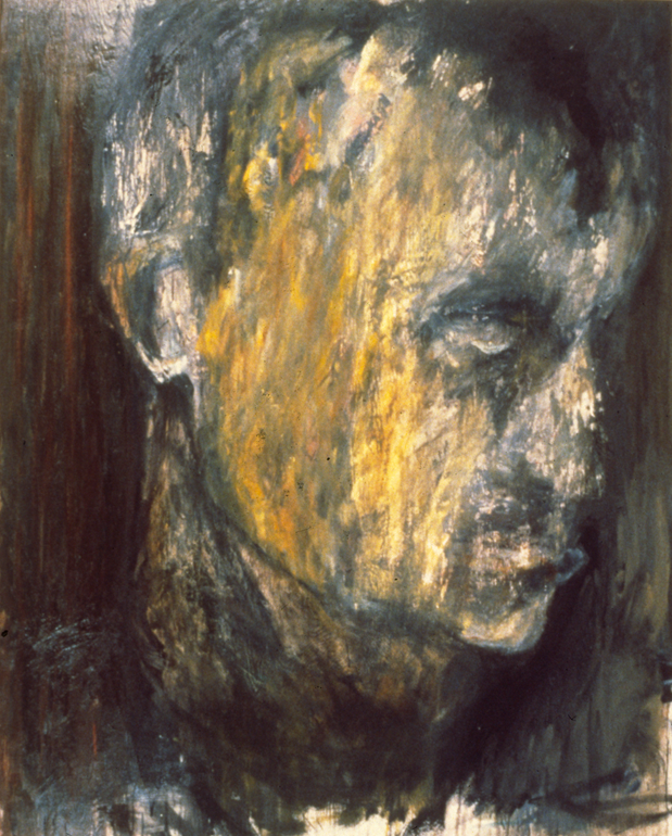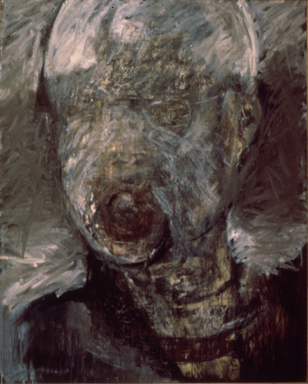 It is difficult to date this untitled work found in Brown’s studio. In terms of scale, it could fit in with the Grimm series, but the face looks much earlier, reminiscent in some ways of Portrait of My Brother (1985) (See Works on Paper). The work is also unfinished (Brown has written on the left side “It’s ok but its probably not going to stay this way”). I decided to include it in the catalogue because Brown continuously re-worked many paintings, and this one is too compositionally coherent to consign to the Ephemera section.