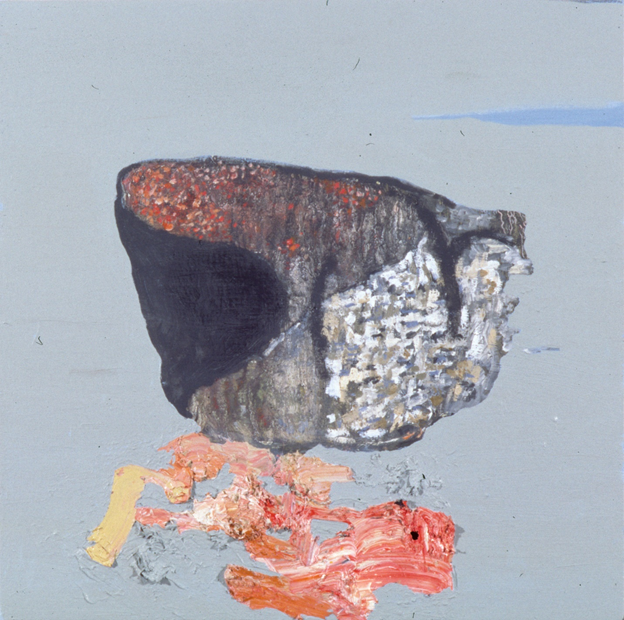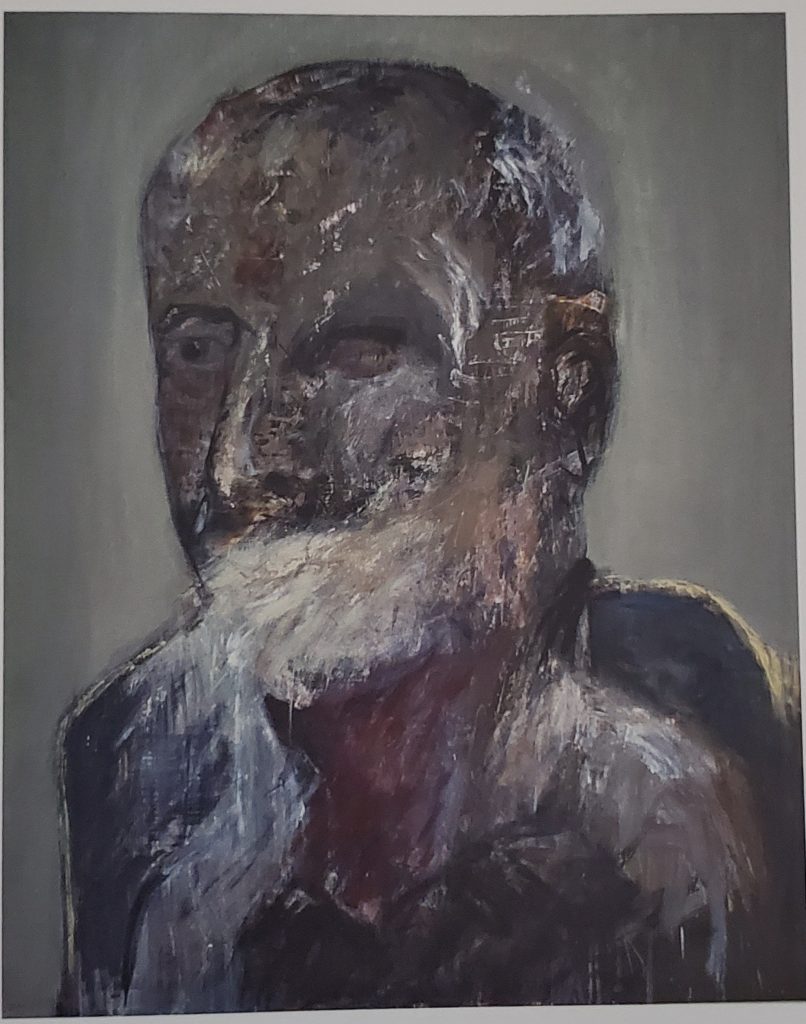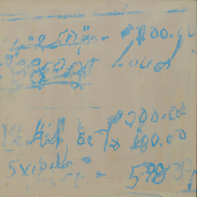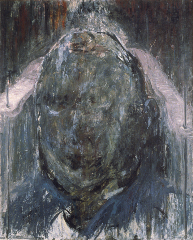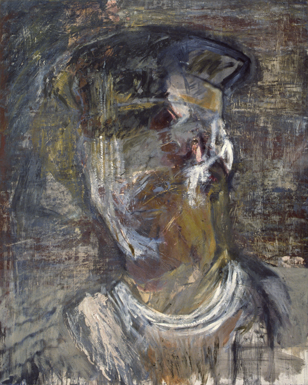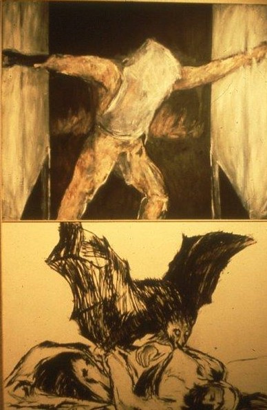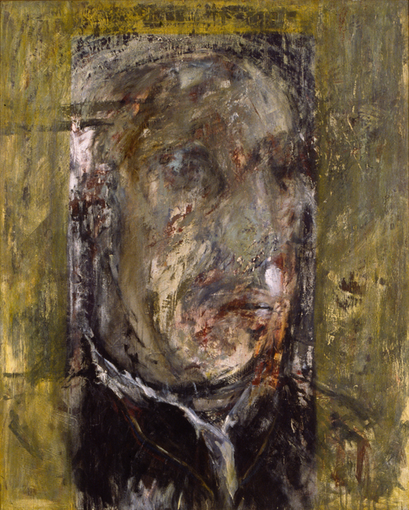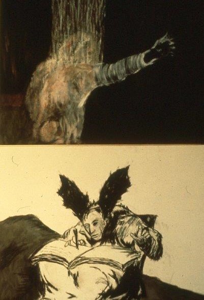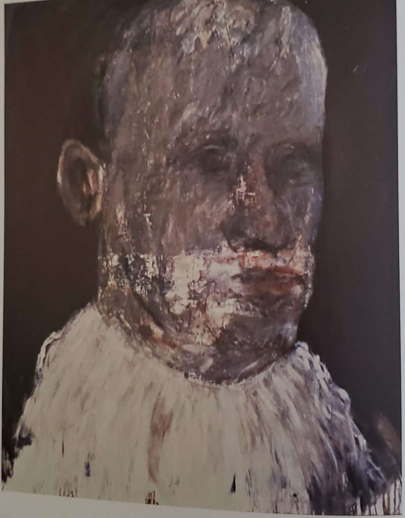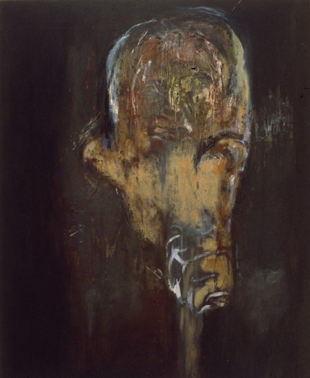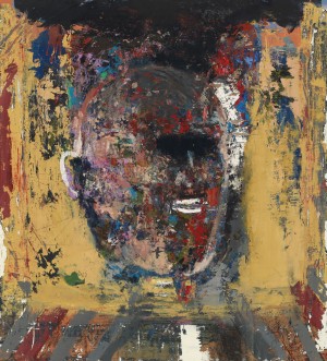 It is difficult to date this untitled work found in Brown’s studio. In terms of scale, it could fit in with the Grimm series, but the face looks much earlier, reminiscent in some ways of Portrait of My Brother (1985) (See Works on Paper). The work is also unfinished (Brown has written on the left side “It’s ok but its probably not going to stay this way”). I decided to include it in the catalogue because Brown continuously re-worked many paintings, and this one is too compositionally coherent to consign to the Ephemera section.
