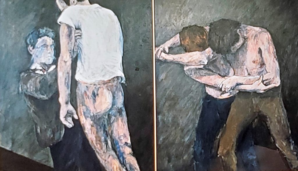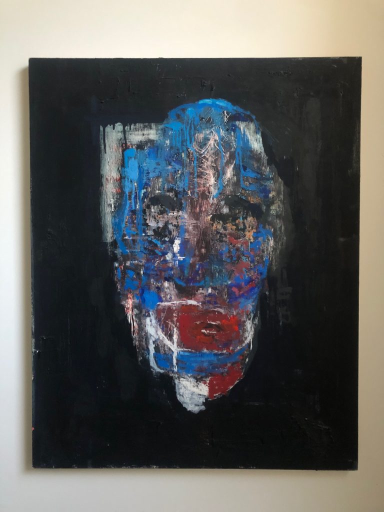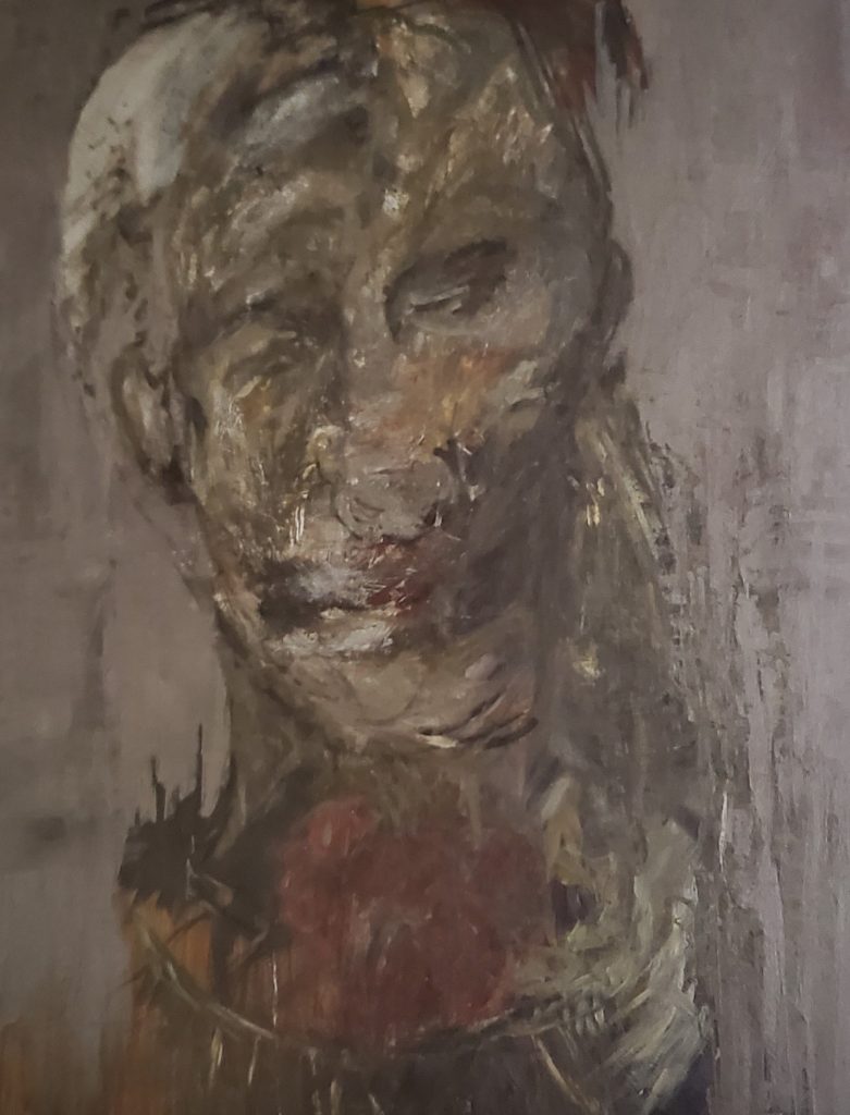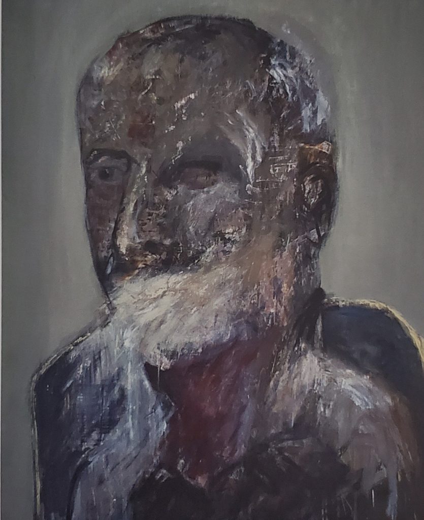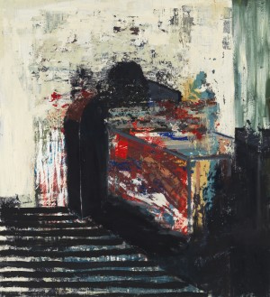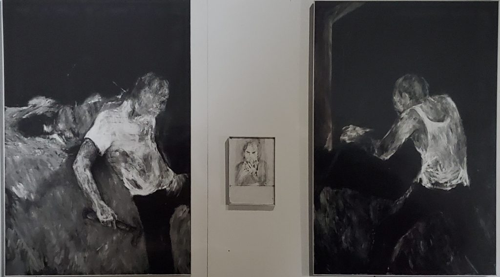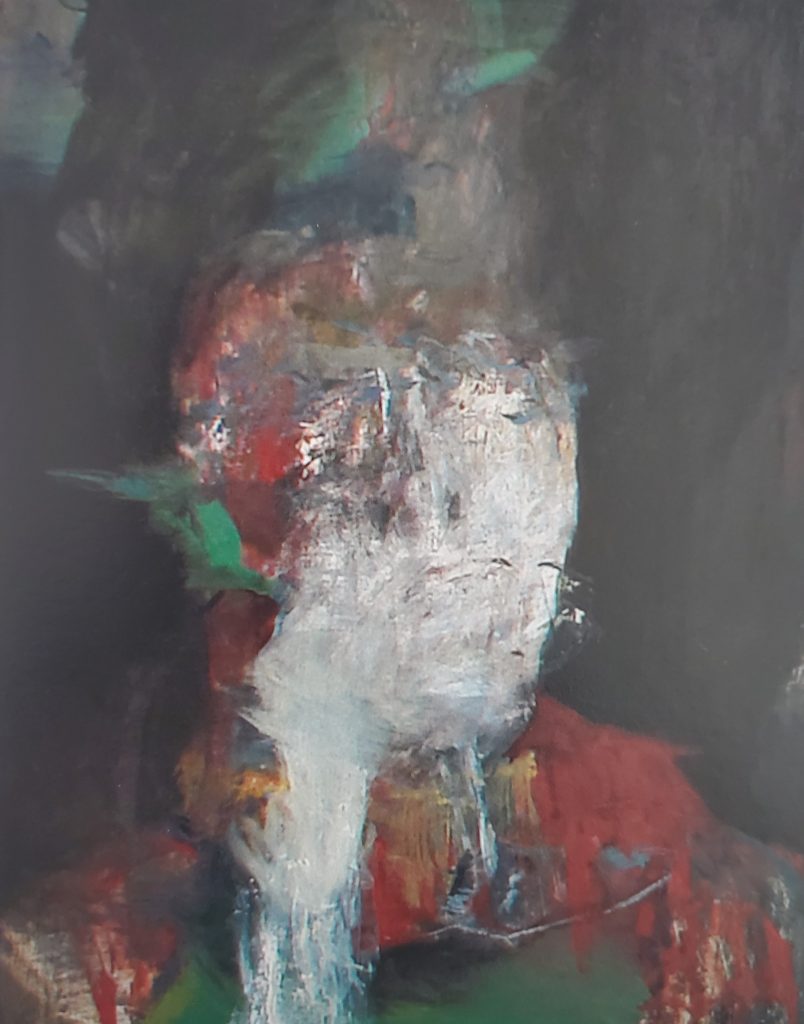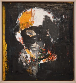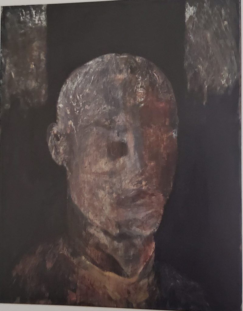 It is difficult to date this untitled work found in Brown’s studio. In terms of scale, it could fit in with the Grimm series, but the face looks much earlier, reminiscent in some ways of Portrait of My Brother (1985) (See Works on Paper). The work is also unfinished (Brown has written on the left side “It’s ok but its probably not going to stay this way”). I decided to include it in the catalogue because Brown continuously re-worked many paintings, and this one is too compositionally coherent to consign to the Ephemera section.