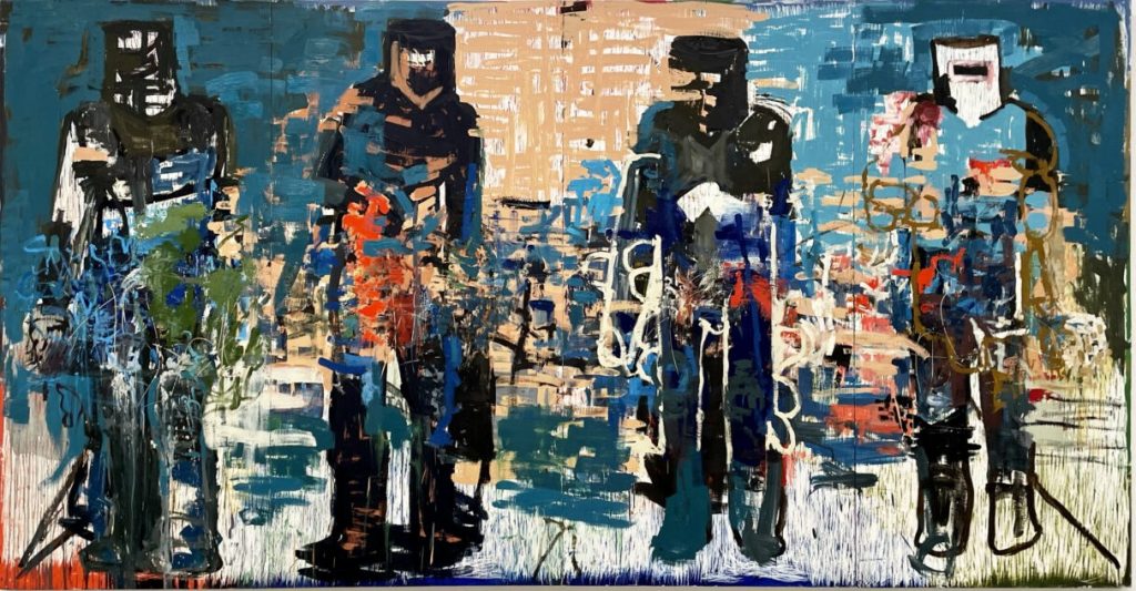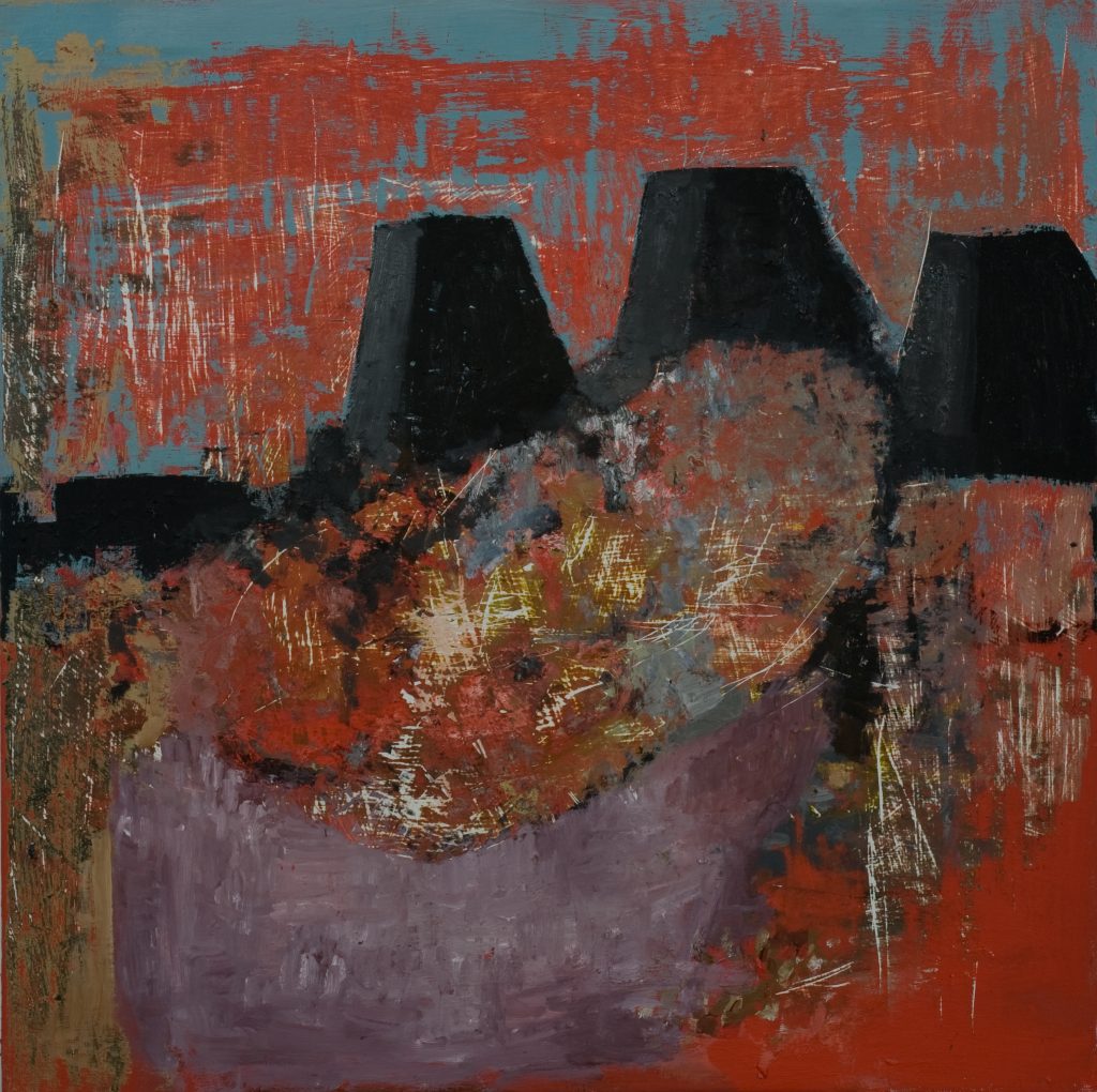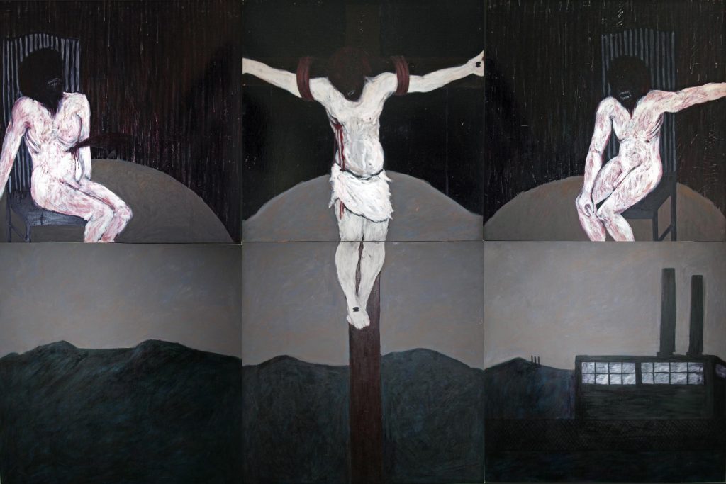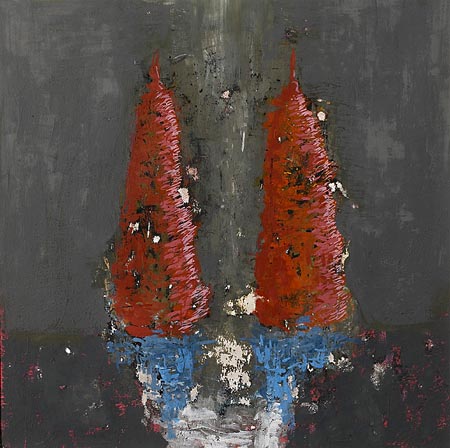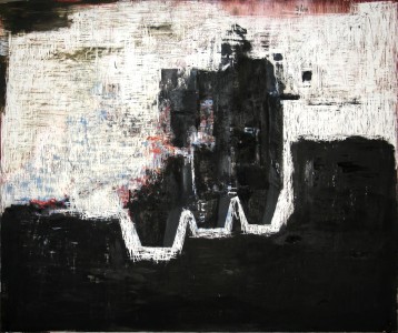 Oil, Tempera, Tar, and Pencil on Wood and Masonite