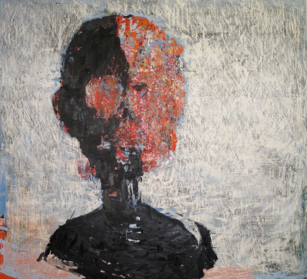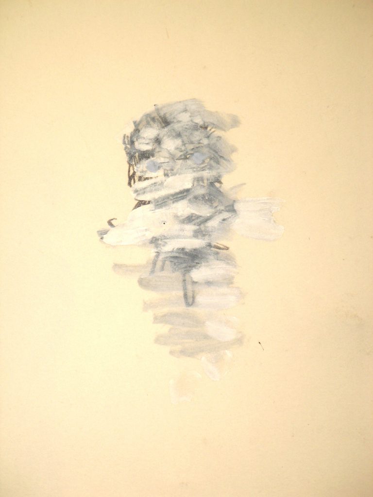 Partial Self Portrait #10, (2002-2003), Gouache on paper, 29.75x 27.5 (Olga Korper, 2003 solo exhibition).