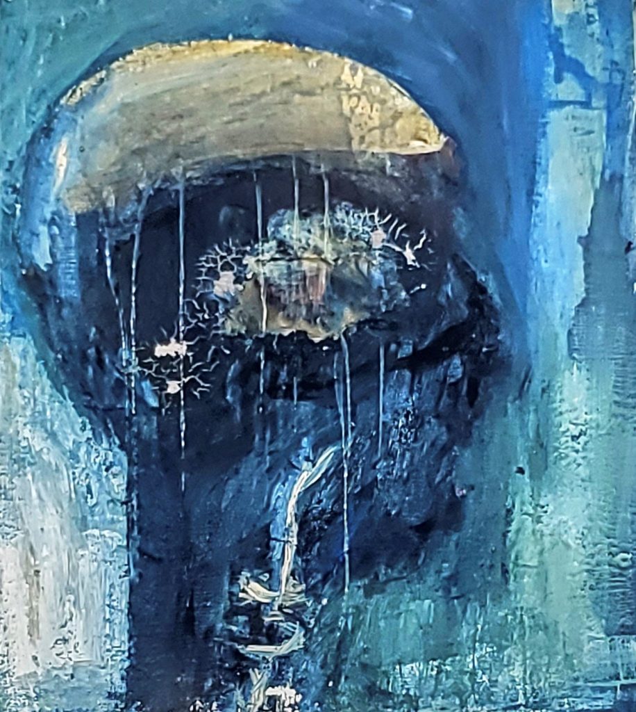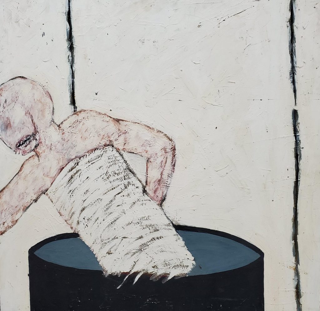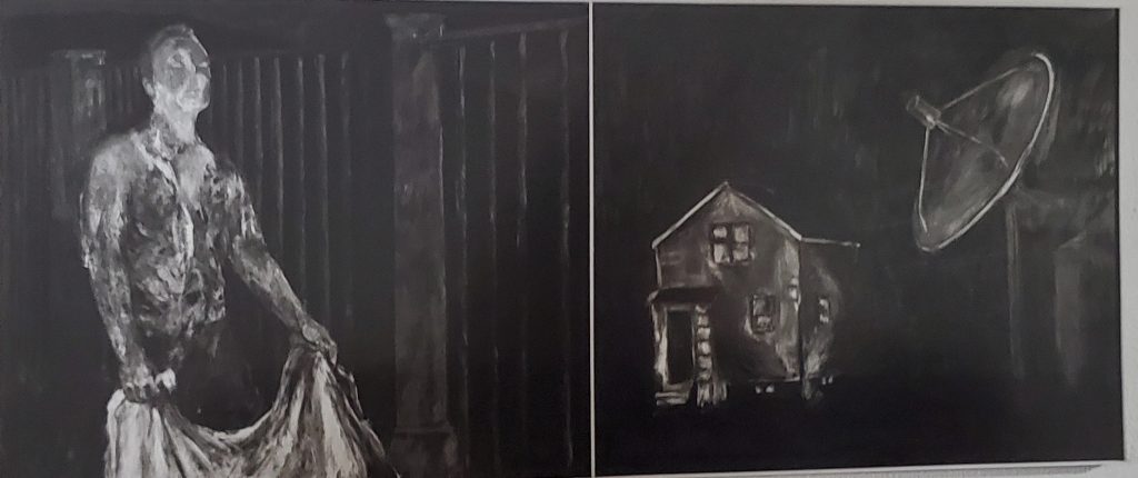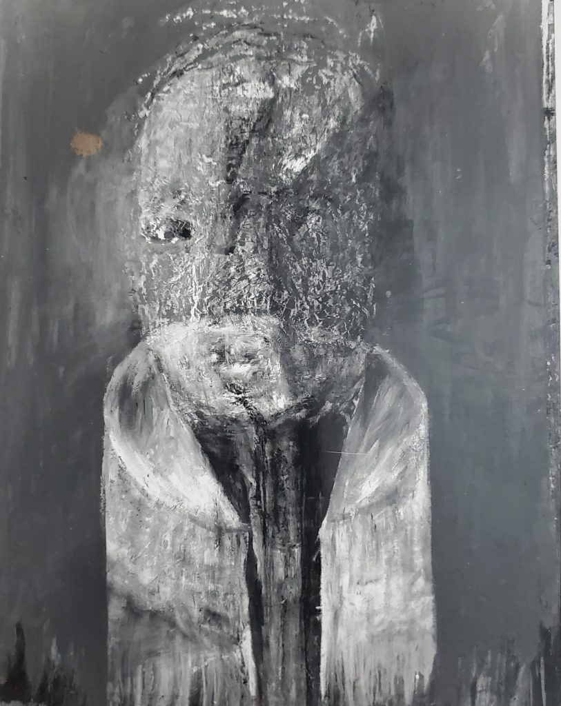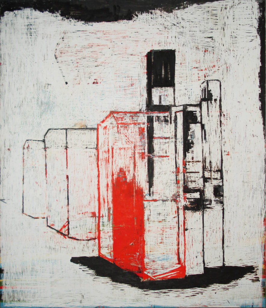 Oil and Tempera on Wood, Grease Pencil and Encaustic on Paper