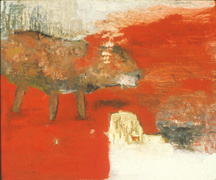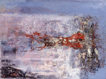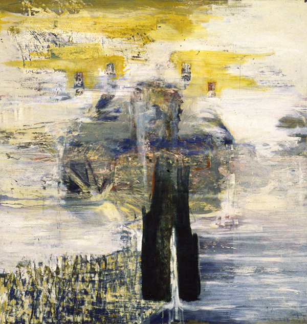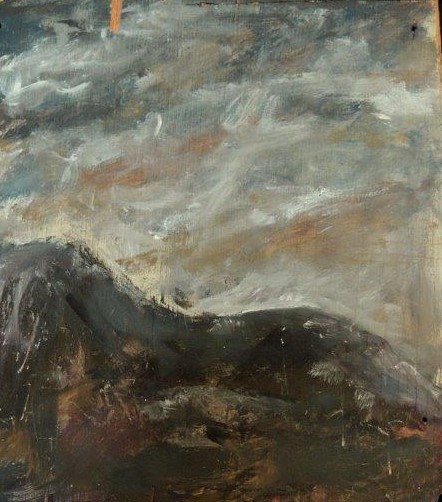 I think that this painting is almost certainly an early Grimm. I found it in a set of slides with Grimm #11, but it was not labelled. The painting method, and composition are reminiscent of the Grimms circa 1997.