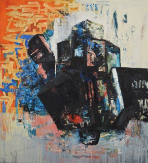 The early influence of Sudbury was made obvious in one of his first shows at the Carmen Lamanna gallery. “Something That Happened in Sudbury” was an installation of six drawings (Searching for a Place to Stand) and a sculptural work of three clay figures lying (dead?) next to each other. The structure in which they are encased was inspired by “cage” that takes miners underground. The overt Northern and working class imagery would fade in his mature paintings, but the aura of work, suffering, and struggle would never disappear.