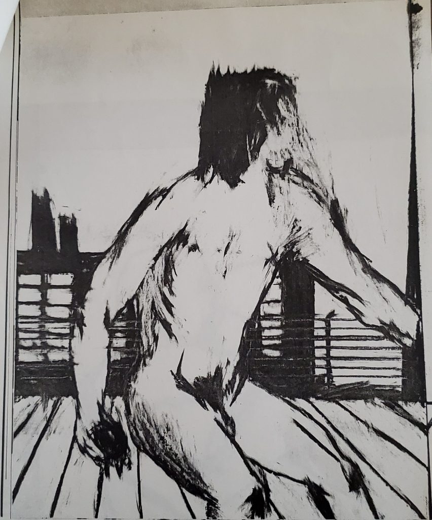 There is little evidence in these rather straightforward and somewhat awkwardly painted canvases of the awesome expressive power of Brown’s mature works on wood. There was enough trace of talent to gain Brown admission to the Ontario College of Art in 1977 (Graduating in 1981). (Prior to attending OCA Brown had studied photography at Humber College in 1975.) Although he never incorporated photography into his artistic practice, he admired many twentieth century photographers (Man Ray, Robert Franck) and generally used photographic images as the starting point for his paintings.