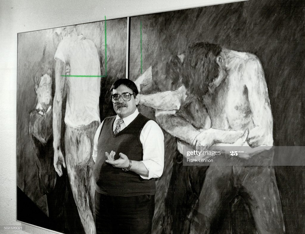 While Sudbury’s scared landscape was an early inspiration, Brown very much became a man of the city and a Toronto painter. After two years studying at OCA, his unremarkable early portraits had transmogrified into Baconian monsters, pale mummies floating in dark landscapes, tortured bodies that evoke the human content of the passion of Christ. He came to public attention with a new group of Toronto painters in early 1980s. His first professional show was a group exhibit in 1981 at the prestigious Carmen Lamanna Gallery with Marc DeGuerre, Brian Boignon, and Joanne Tod.